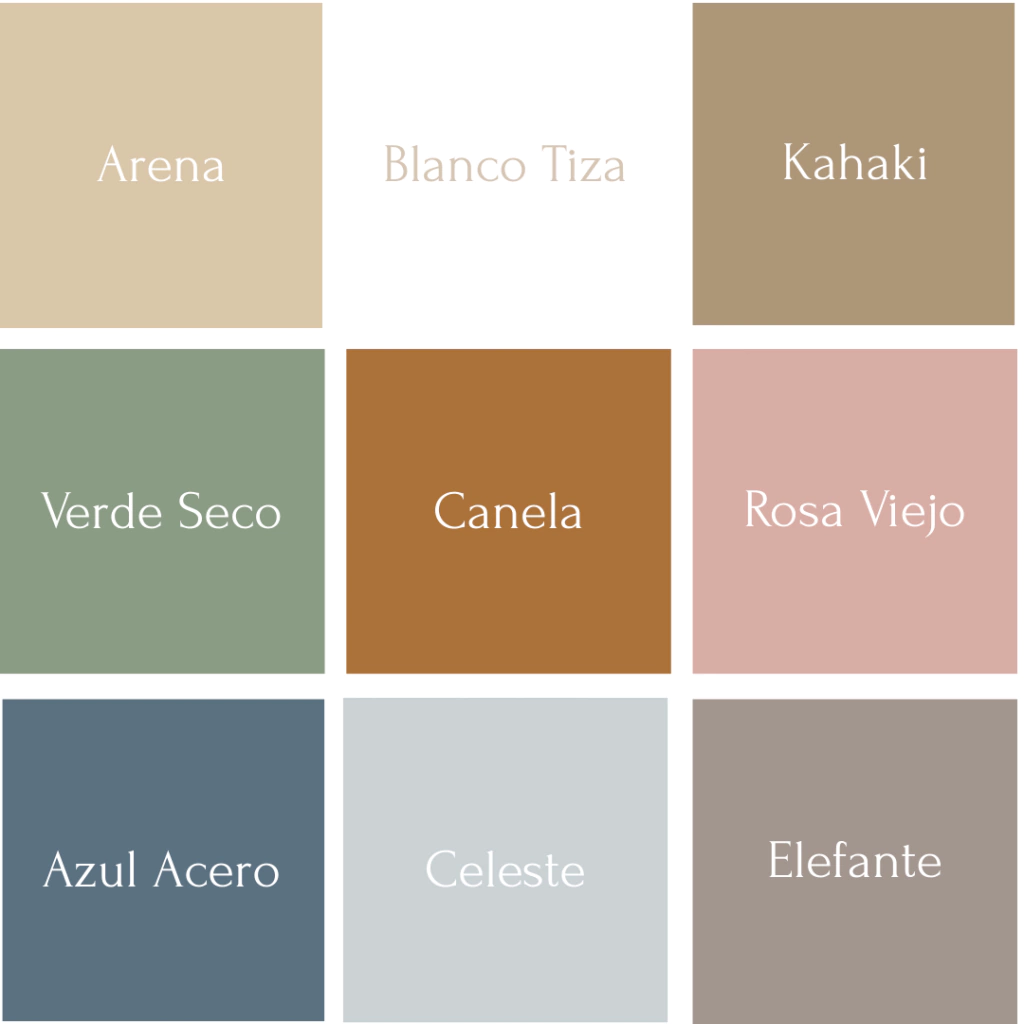 Elegí entre una paleta cuidadosamente seleccionada para combinar con tu decoración: - Verde Seco - Celeste - Arena - Blanco Tiza - Kahaki - Rosa Viejo - Azul Marino - Elefante-Canela.
