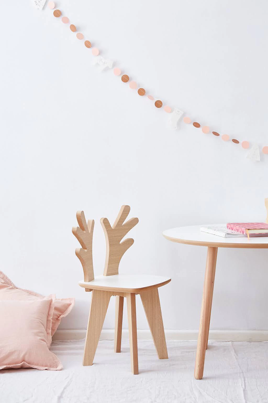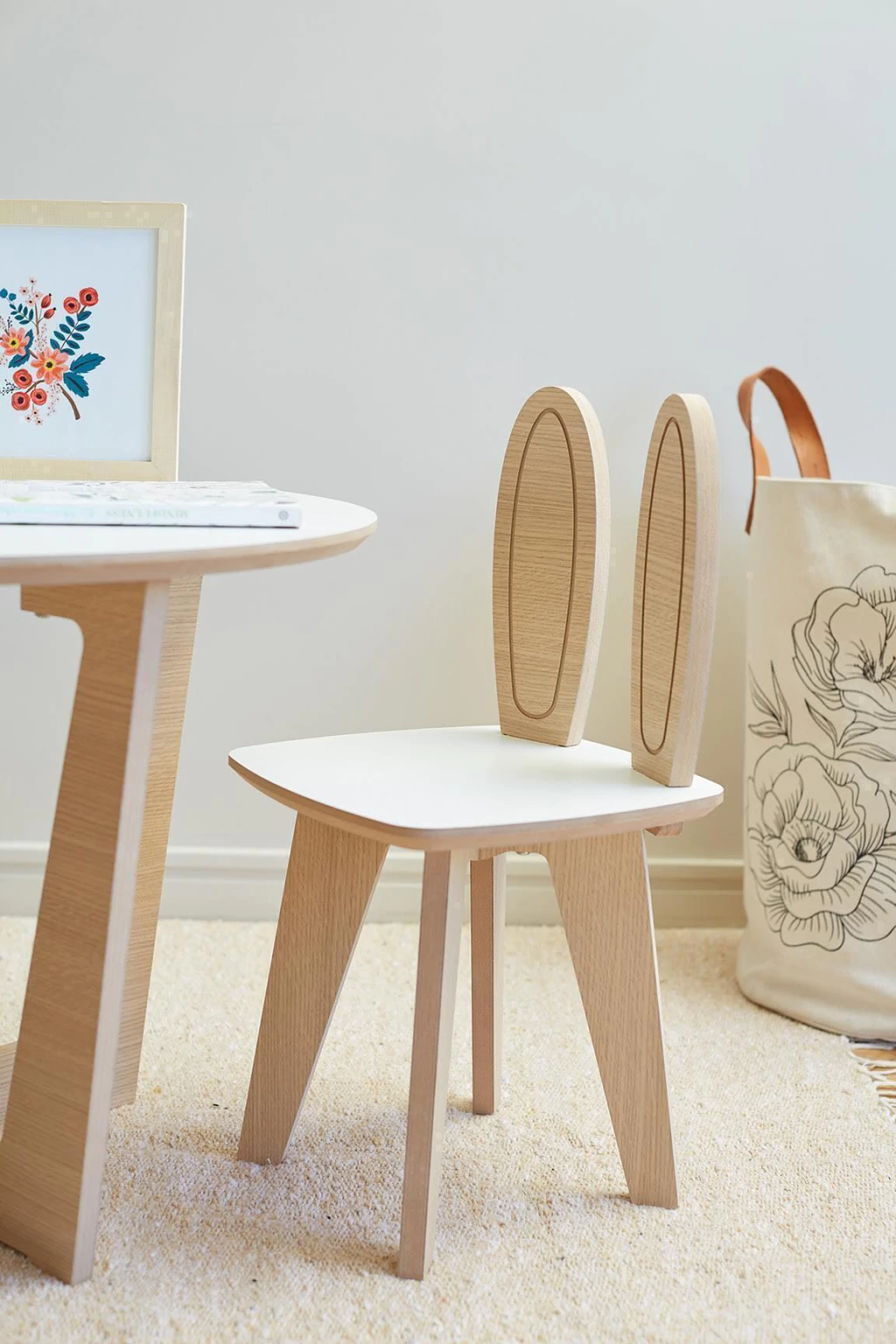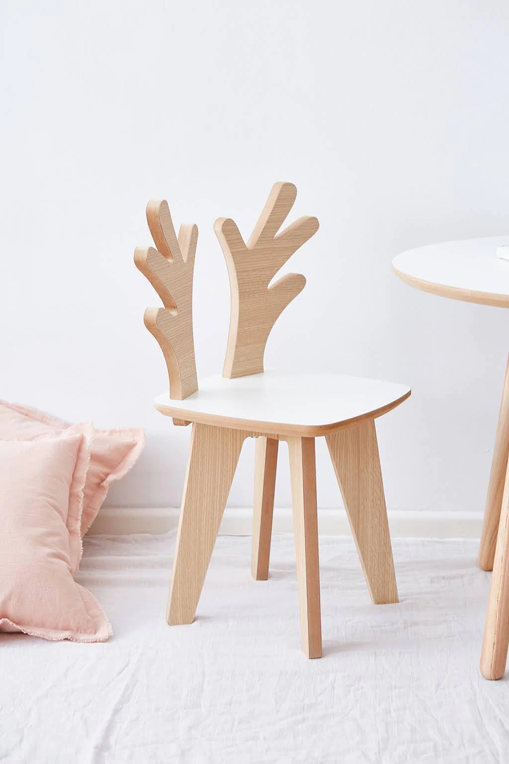 Son ideales para acompañar mesas infantiles o crear rincones de lectura y juego. Su diseño estimula la imaginación y aporta calidez al ambiente.