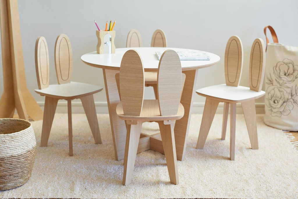 Incluye una mesa redonda amplia de 70 cm y 2 banquitos infantiles con diseño a elección, combinando funcionalidad, comodidad y un toque lúdico que a los chicos les encanta.