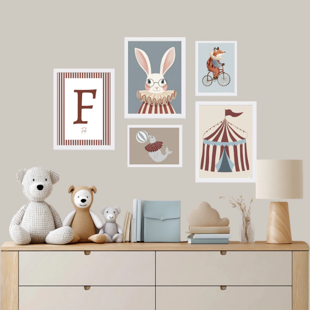 ⭐ ¿Por qué elegir este set? - Diseño moderno y divertido con temática circo, perfecto para inspirar la imaginación. - Personalizado y único, ideal para darle un toque especial a la habitación. - Listo para colgar, sin complicaciones. - Un regalo ideal para cumpleaños, nacimientos o cualquier ocasión especial.
