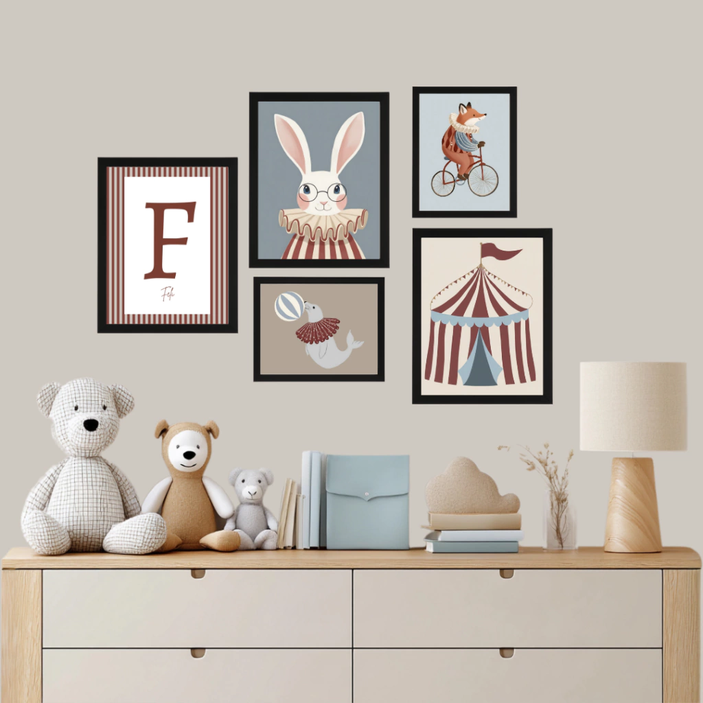Dale a la habitación de tus hijos ese toque mágico y personalizado con este Set de 5 Cuadros Infantiles Circo. ¡Decorá con estilo y creatividad hoy mismo!