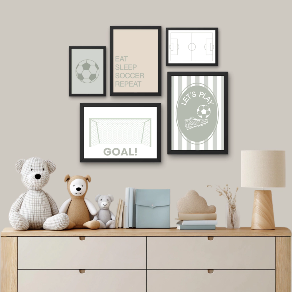 Set de 5 Cuadros Infantiles Fútbol | Estilo Nórdico Personalizado