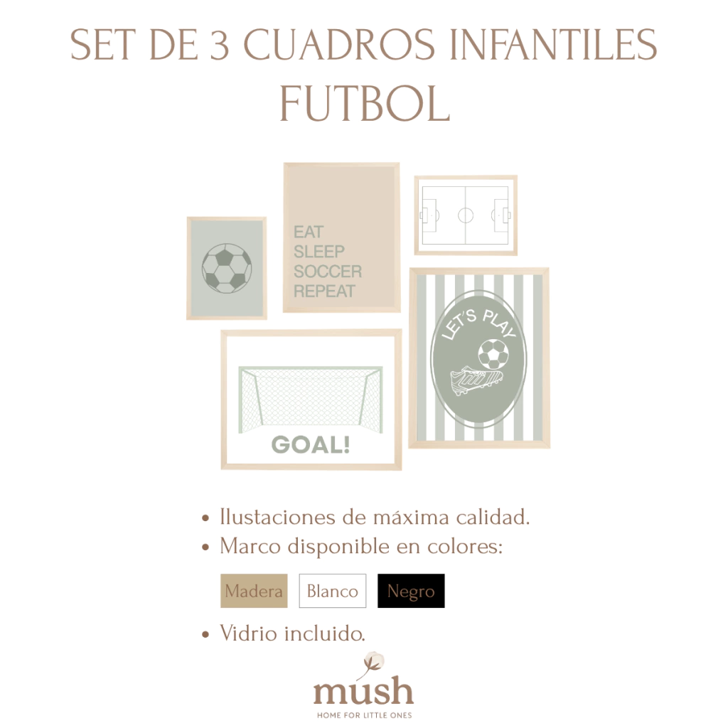 Decorá el cuarto de tu hijo con un set exclusivo de cuadros temáticos de fútbol. Diseñados en tonos suaves y estilo nórdico, ideales para habitaciones infantiles modernas, cálidas y originales.