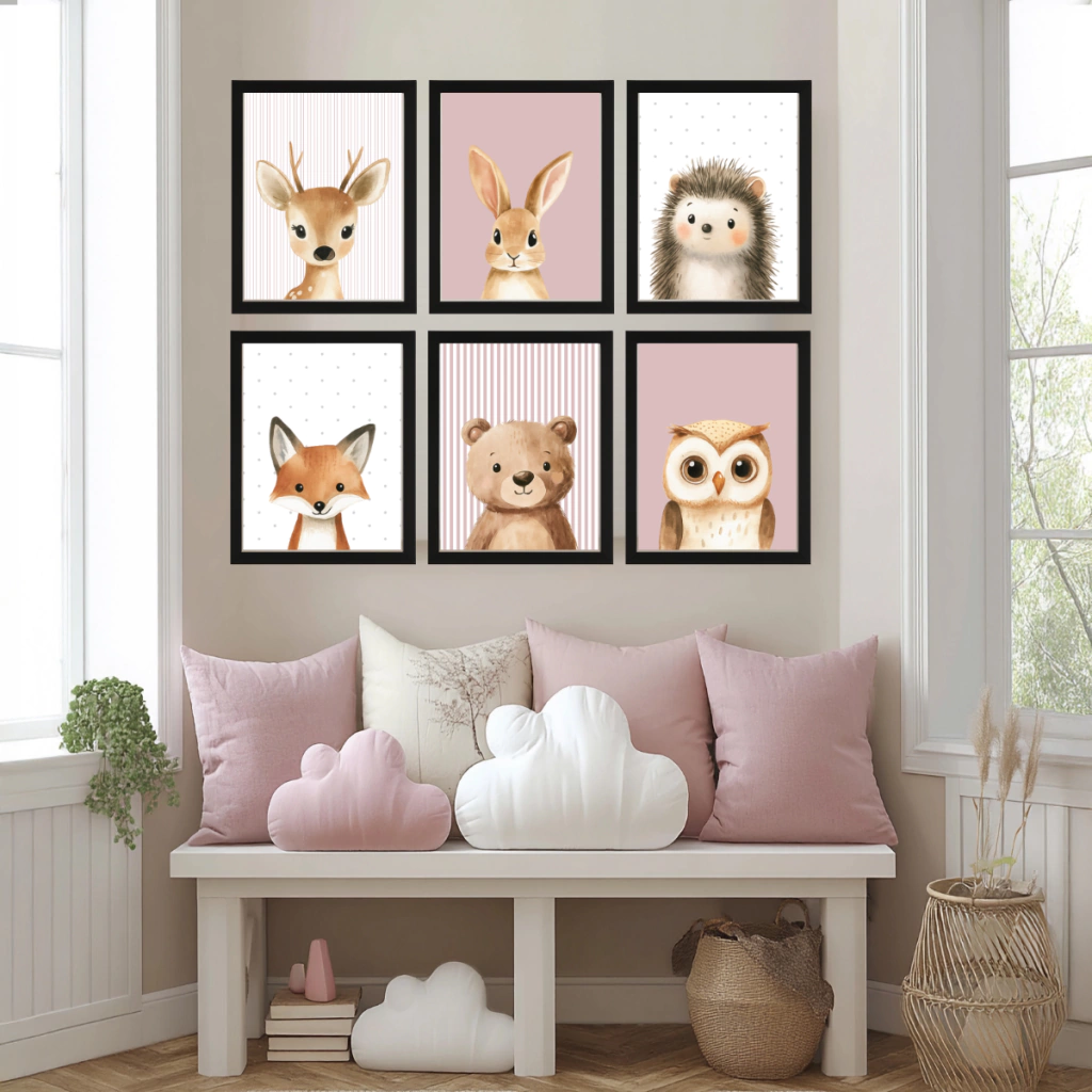 ✔️ 6 cuadros infantiles con ilustraciones de animales del bosque
